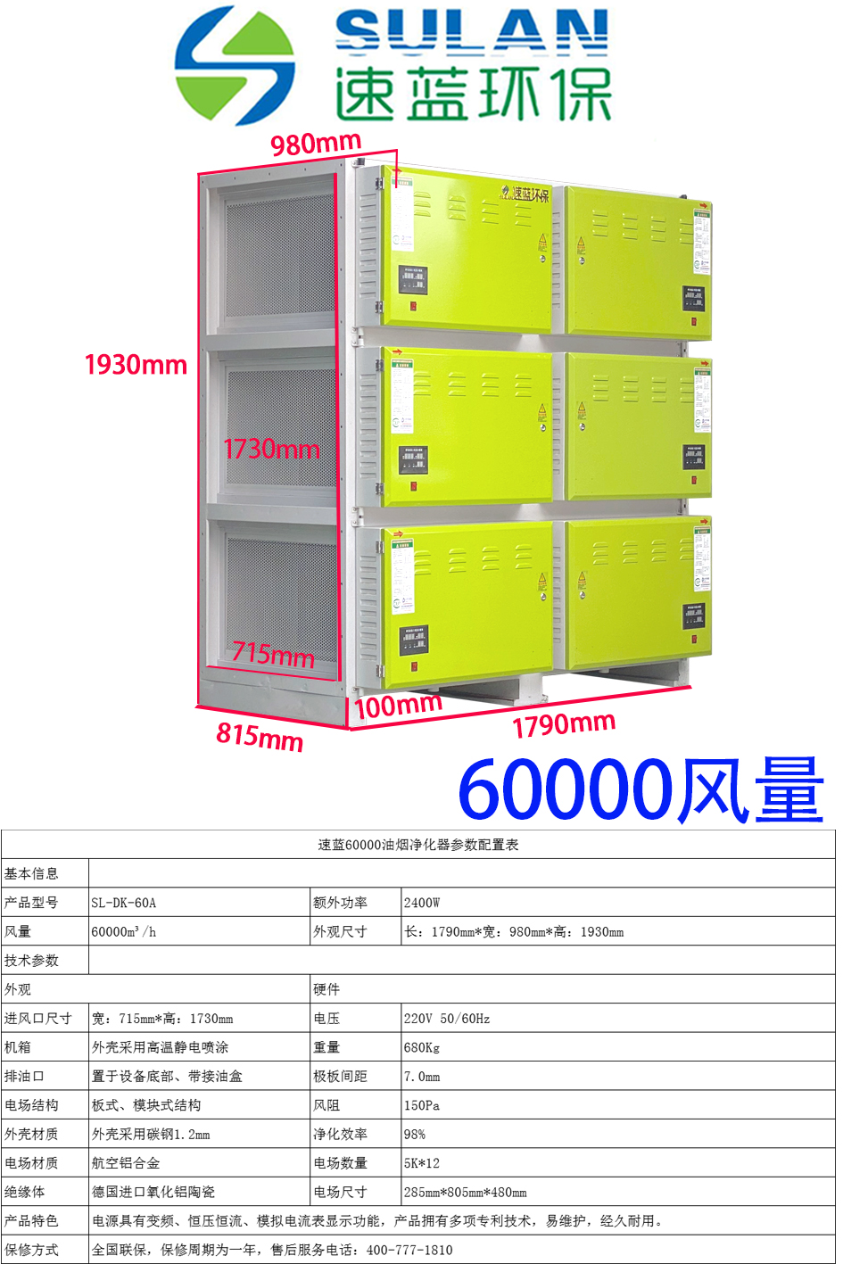 6萬風量油煙凈化器-速藍環保類別:低空油煙凈化器
