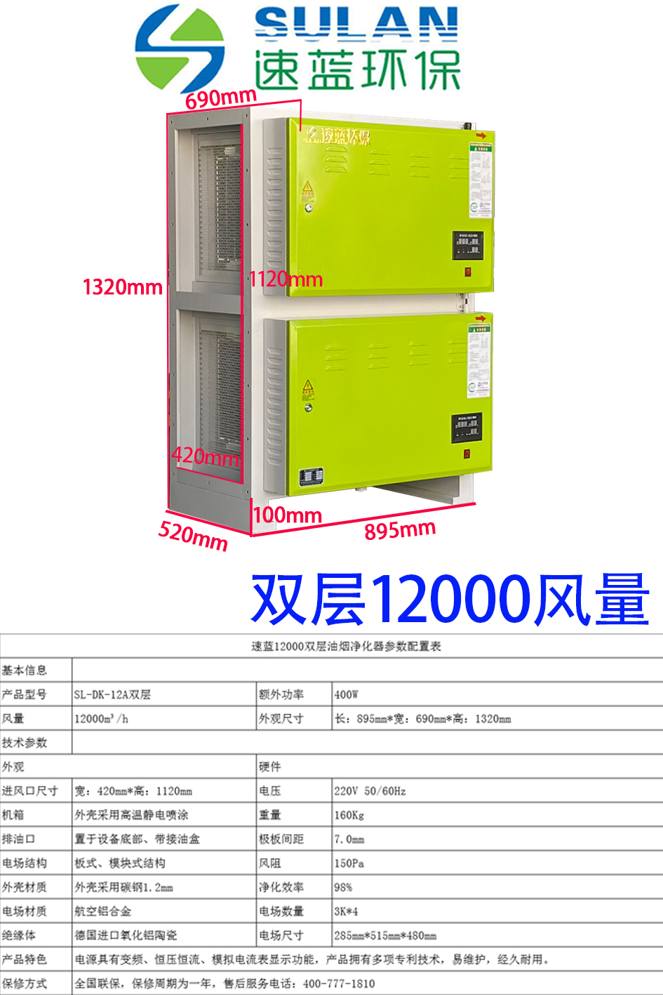 12000風(fēng)量雙層低空油煙凈化器-速藍環(huán)保類別:低空油煙凈化器